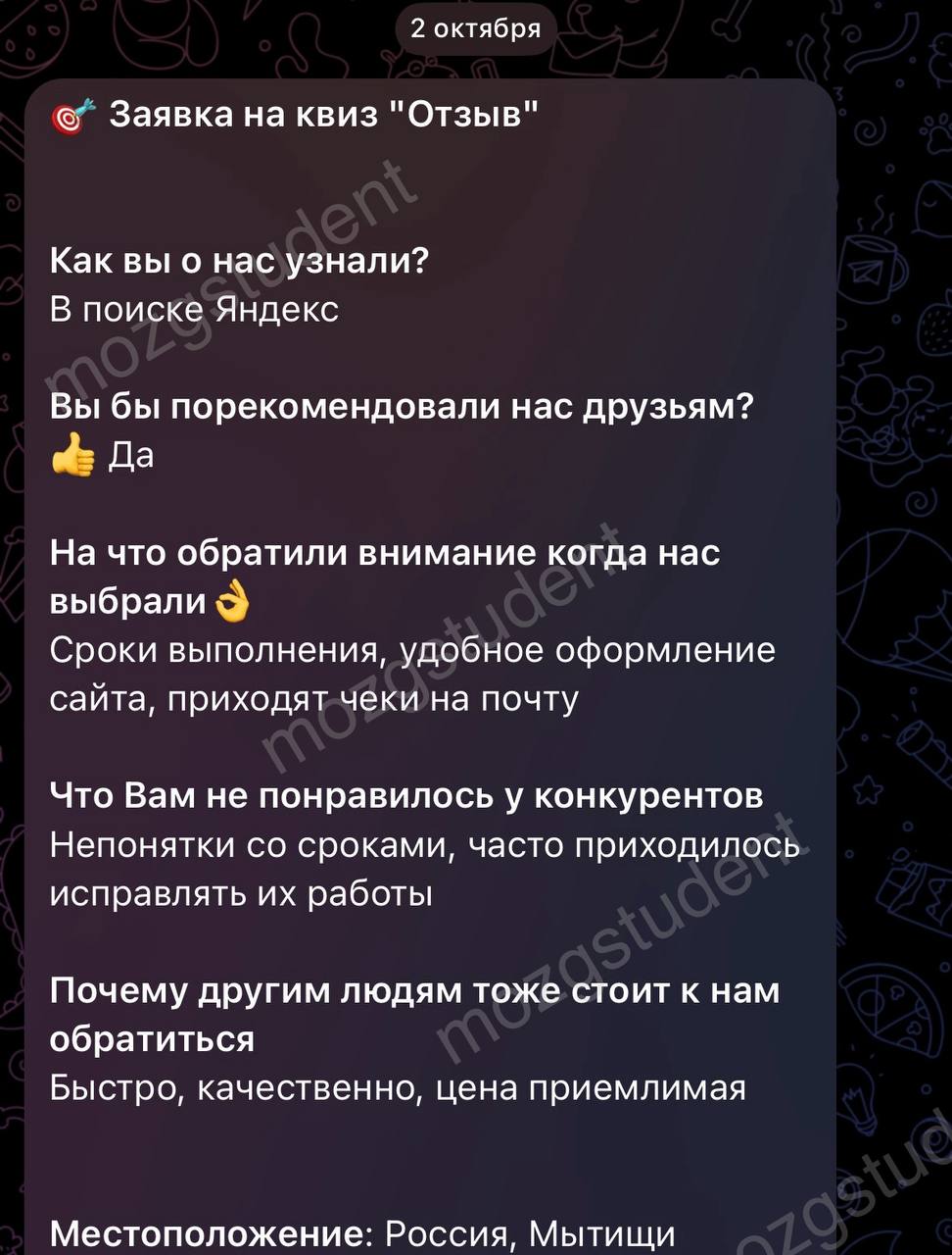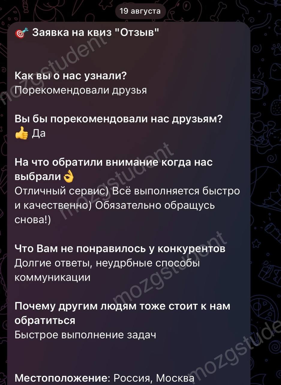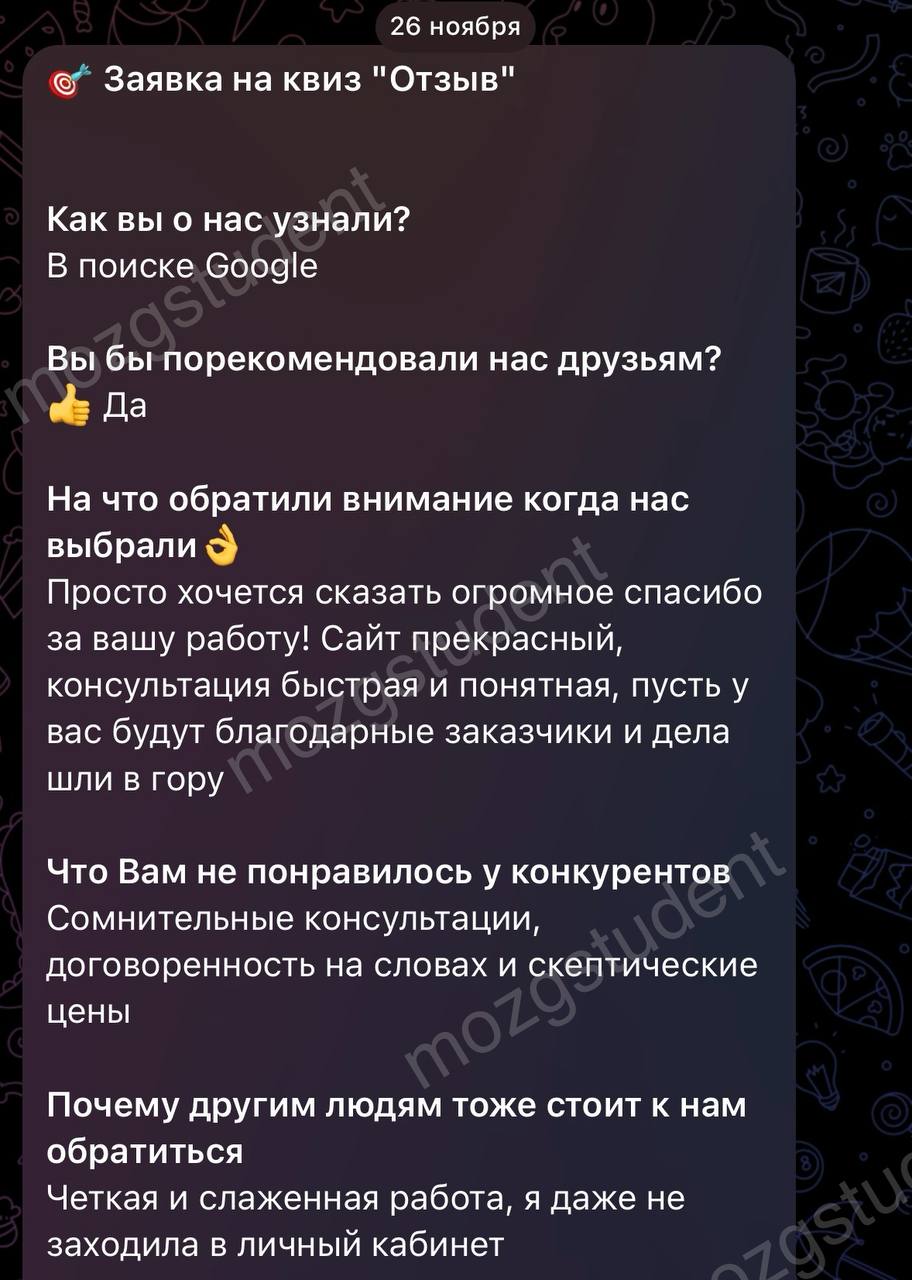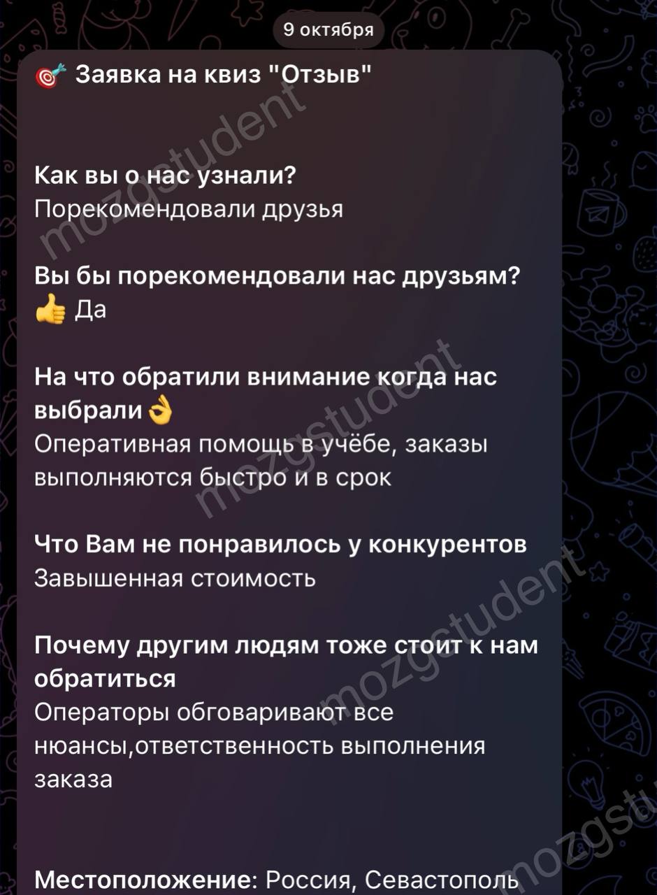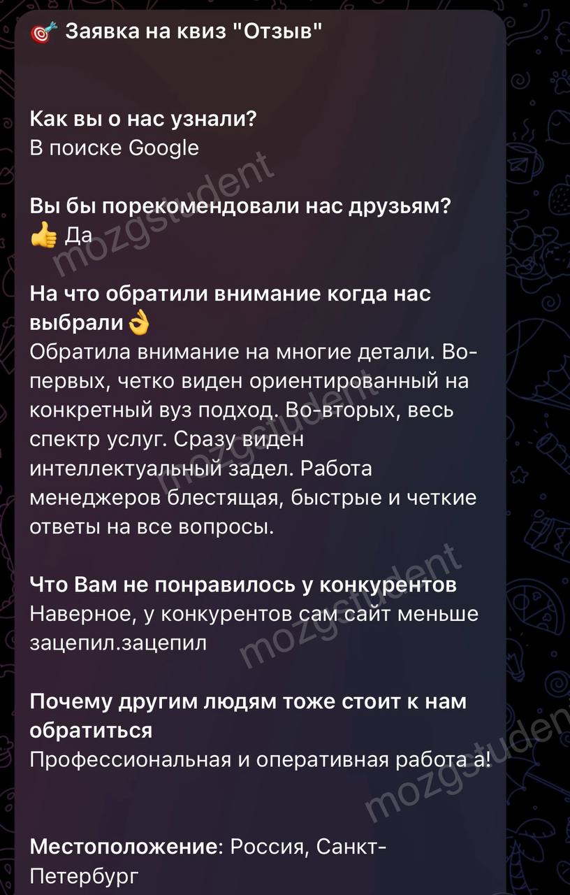 Данный сайт: дочерний проект компании mozgstudent, поэтому опубликованные отзывы содержат названия обоих проектов