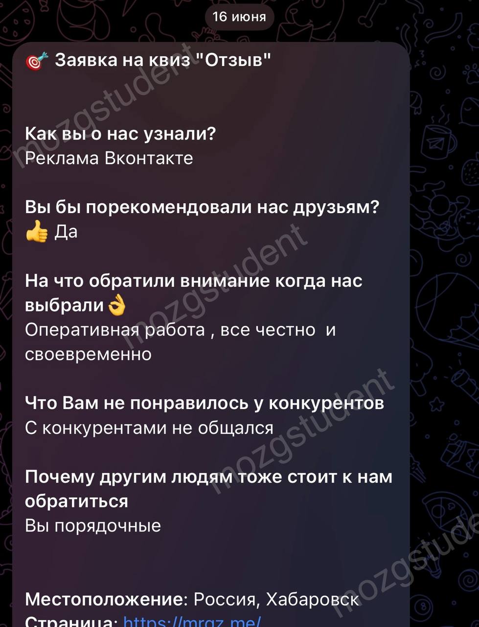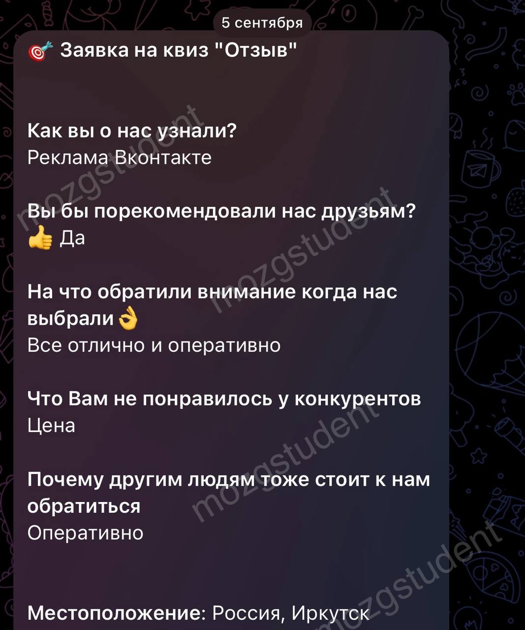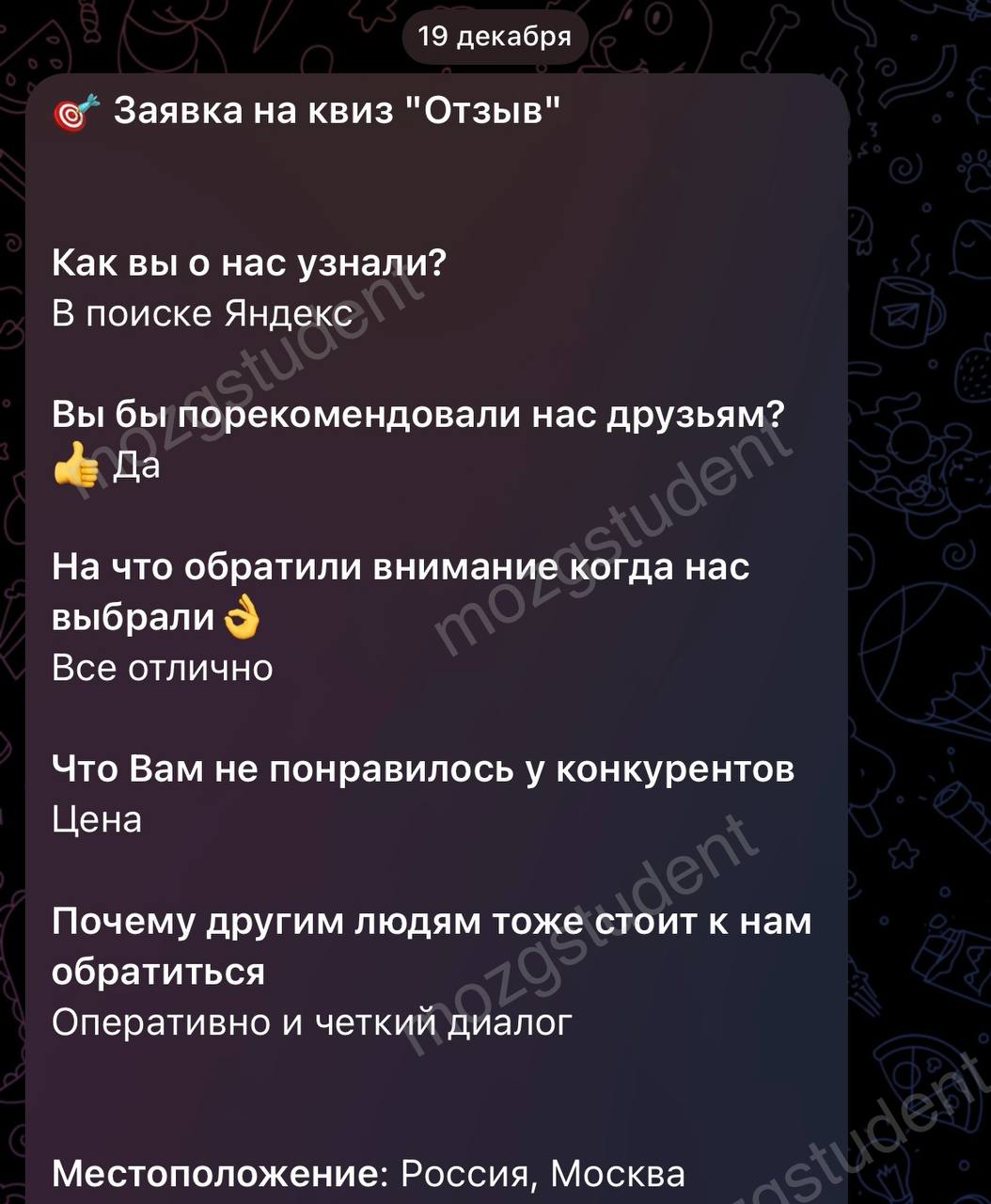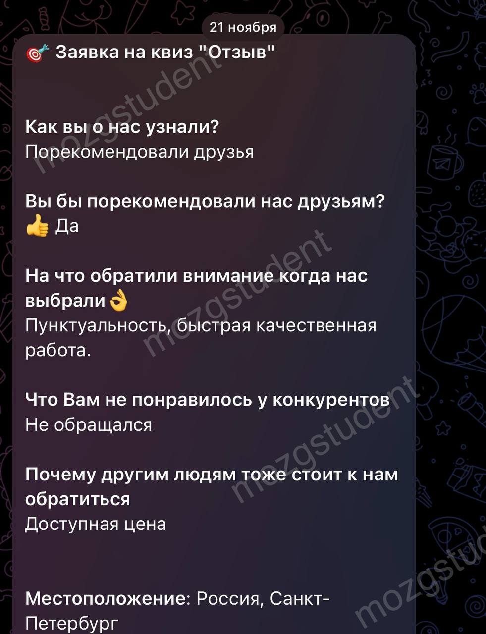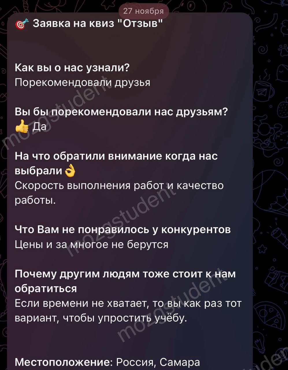Данный сайт: дочерний проект компании mozgstudent, поэтому опубликованные отзывы содержат названия обоих проектов