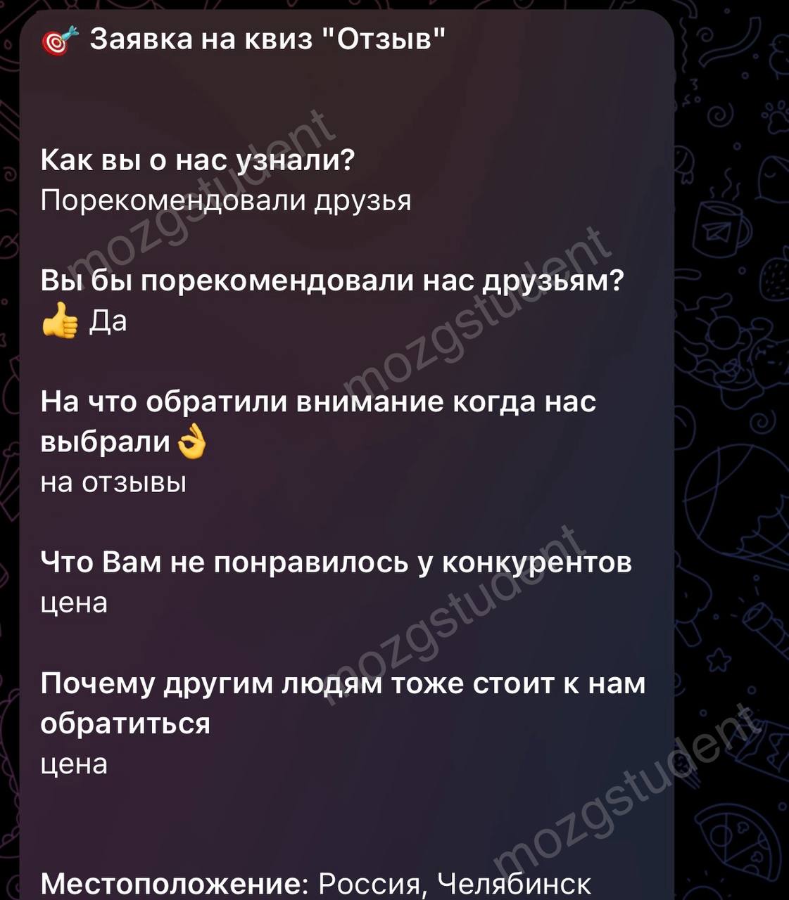 Часть отзывов мы собираем через онлайн-анкету, которая позволяет найти слабые места.