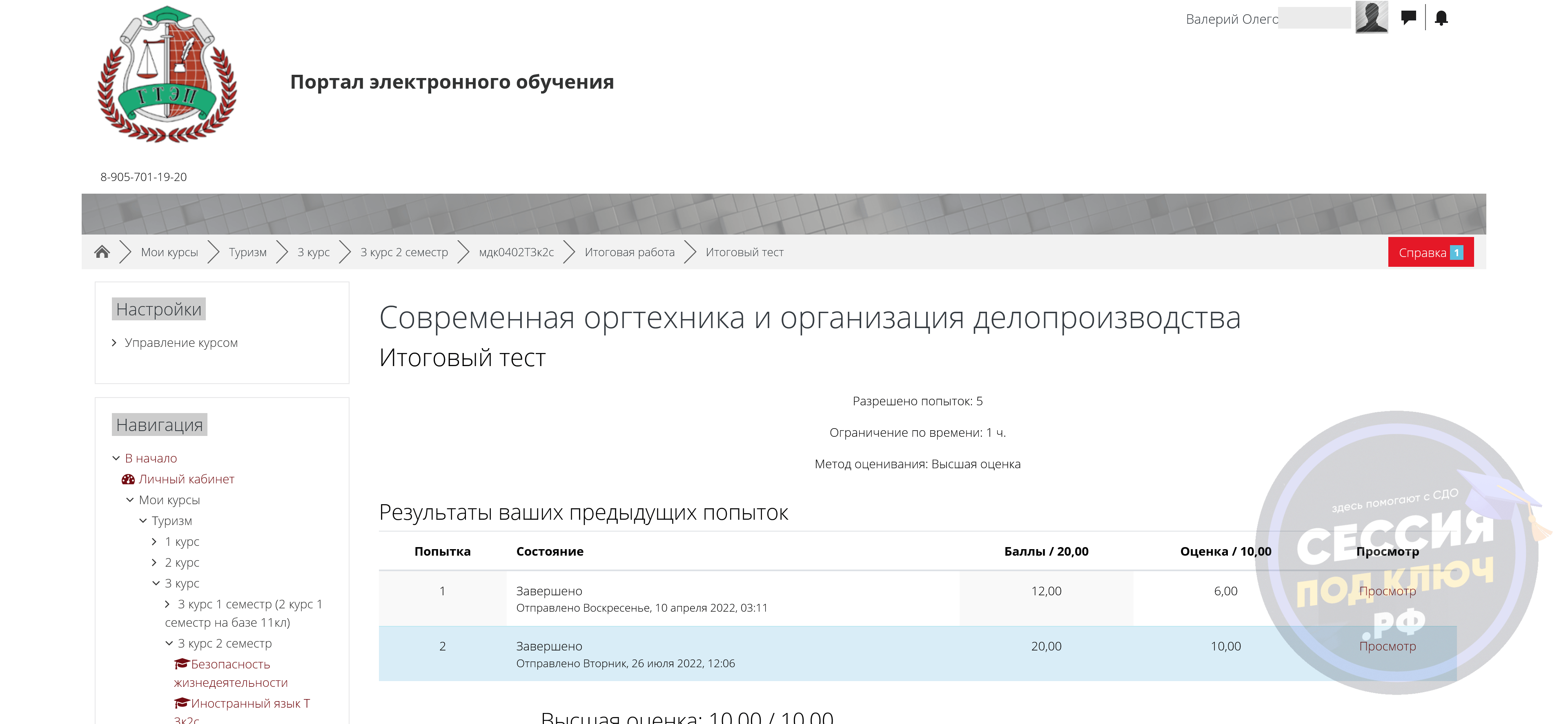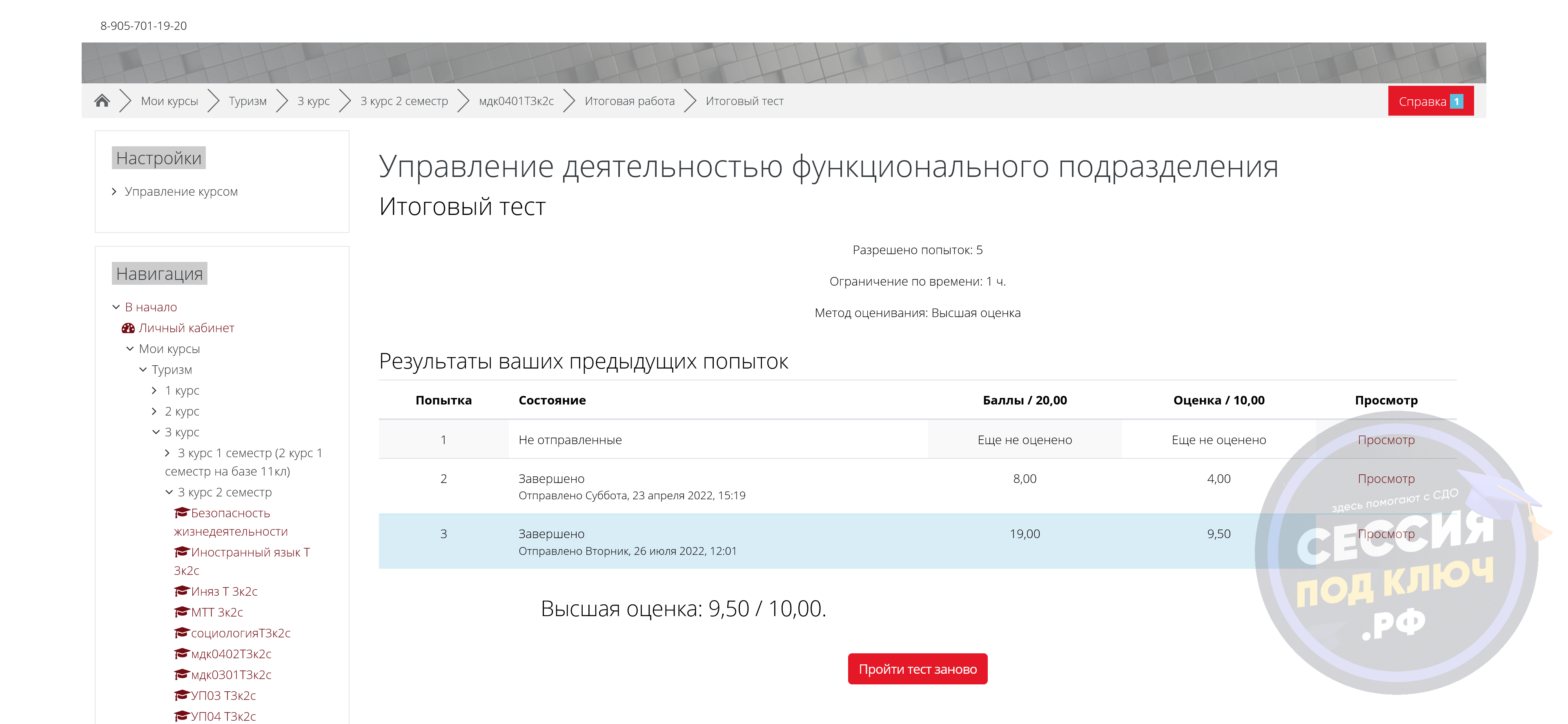 Требовалось подготовить тесты по дисциплине «Основы социологии и политологии», итоговые тесты по предметам «Современная оргтехника и организация делопроизводства» и «Управление деятельностью функционального подразделения», а также закрыть позицию с тестом и заполненным отчетом по практике «УП04 3к2с».