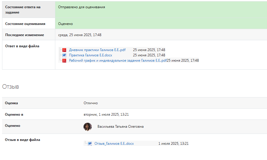 По заказу закрыли отчет по практике и загрузили итоговые материалы в систему.