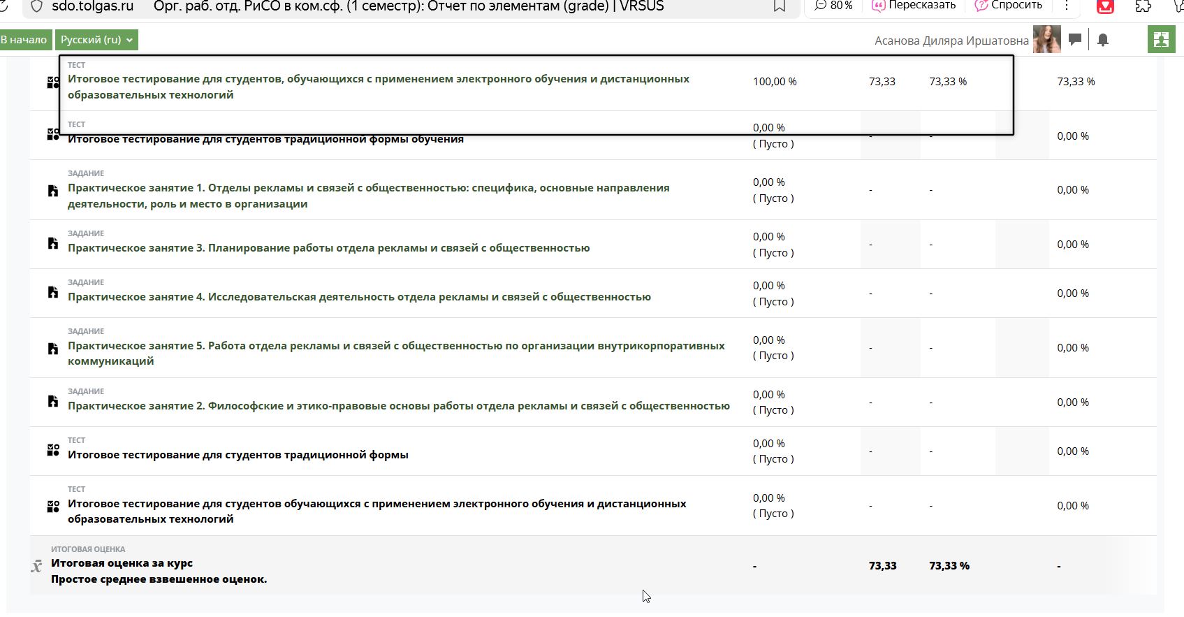 По заказу для студента ВятГУ требовалось закрыть пакет тестов по Организация работы отделов рекламы и связей с общественностью в коммерческой сфере (1 семестр) и Организация добровольческой (волонтерской) деятельности и взаимодействие с социально ориентированными НКО.